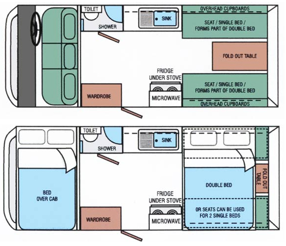 If your travelling group is from 2 to 3 adults or two adults and two children, then this is the motorhome for you. It is a purpose built motorhome not a converted cargo van so it has plenty of room and excellent facilities. There are 3 seats in the drivers cab and it has a full wrap around rear lounge area for maximum comfort which can be configured as a large double bed or two good sized singles. The Freedom will not be available from the 1st May 2010 till 30th September 2010.